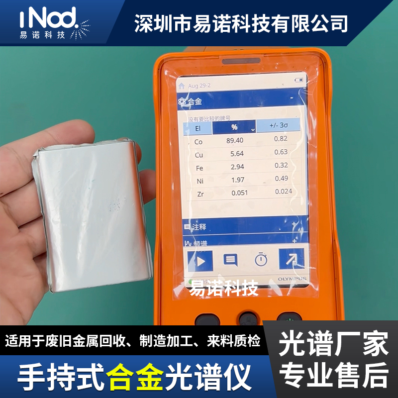 此外,在廢舊電池回收時,手持式光譜儀能快速分析廢舊鋰電池中鋰、鈷、鎳等有價金屬含量,評估回收價值,并對回收材料進行質量檢測,確保其滿足再生產要求。