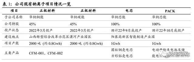 華鈉芯能同樣為 PACK 廠的運營主體,據公司官網 1Gwh 鈉離子 Pack 電池生產項目于 2022 年 7 月 25 日宣布正式開工,且該項目建設全面對標行業一流, 2022 年 10 月底投產。