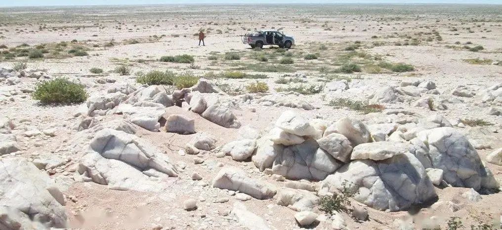 4.1烏姆阿奎尼納礦床礦床位于毛里塔尼亞西部的努瓦迪布灣省(Dakhlet Nouadhibou),西距努瓦迪布(Nouadhibou)港口130km。礦床為熱液脈石英型。礦石呈淺灰色的半透明狀、光滑透明狀,部分采樣礦石的SiO2含量大于99.8%。地表出露的礦體表現(xiàn)為破碎的大塊脈石英礫石,其上覆蓋少量紅土。石英的推斷資源量為500~1000萬噸(Feytis,2010),但因缺少鉆孔驗證和測試分析以及必備的選礦實驗,可用作高純石英原料的資源量不明。截至目前未進行有效的采礦活動。