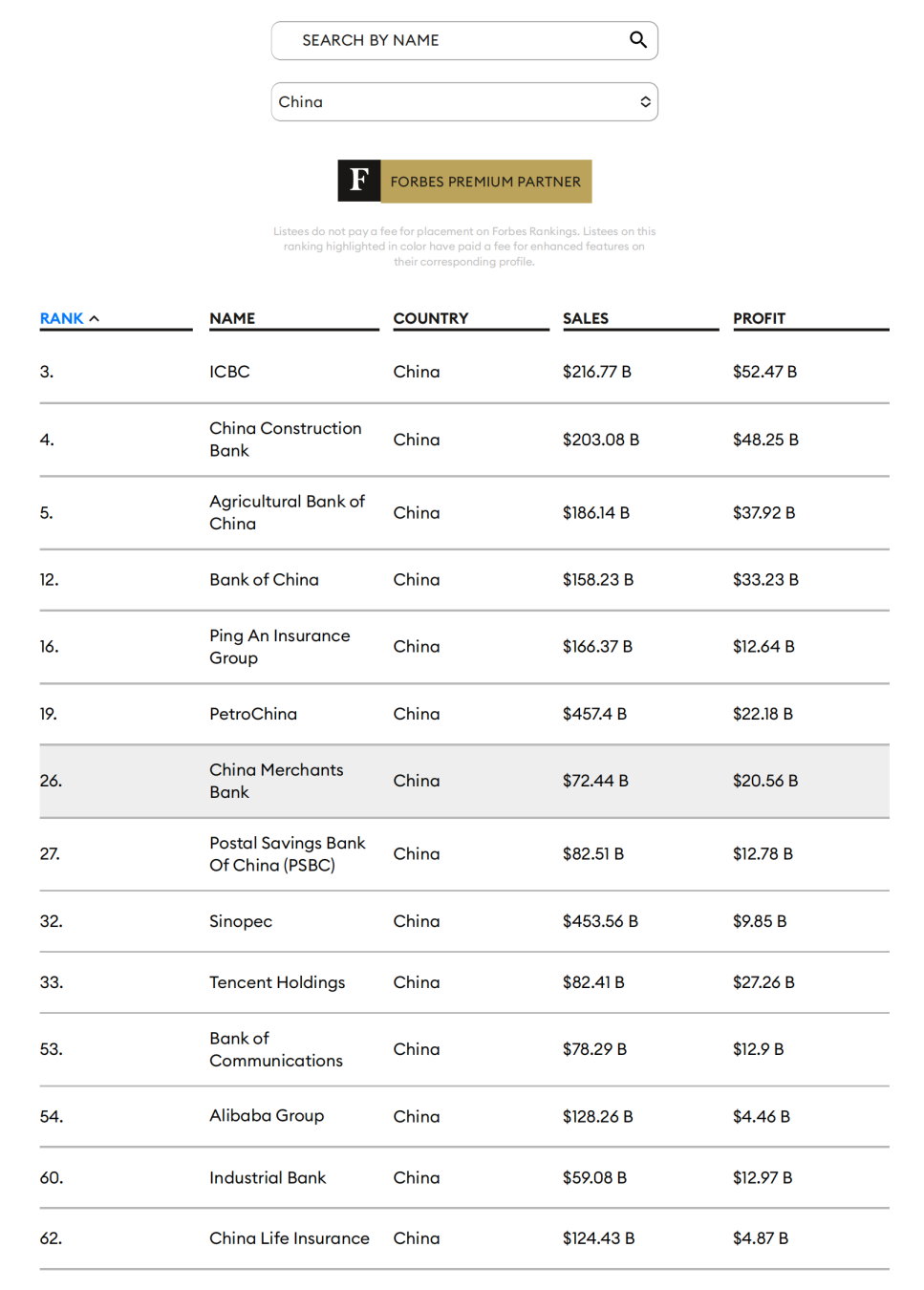 該榜單使用了截至2023年5月5日的過去12個(gè)月的財(cái)務(wù)數(shù)據(jù)來計(jì)算公司銷售、凈利、資產(chǎn)和市值等四個(gè)方面的指標(biāo),并用這些指標(biāo)進(jìn)行排名。整體統(tǒng)計(jì)看,2023年上榜公司的總銷售額為50.8萬億美元,凈利潤為4.4萬億美元,資產(chǎn)為231萬億美元,市值為74萬億美元。