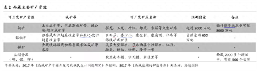 西藏位于亞洲板塊和印度板塊的碰撞地帶,兩大板塊碰撞造山而發(fā)生的成礦作用使西藏?fù)碛袠O為豐富的礦產(chǎn)資源。據(jù)西藏自治區(qū)人民政府官網(wǎng)顯示,西藏目前已發(fā)現(xiàn)的礦種(亞種)達(dá)到103種,其中銅、鉻金屬保有資源儲量與鹽湖鋰資源遠(yuǎn)景儲量位居全國第一。據(jù)自然資源部的估計,西部蘊(yùn)藏著我國65%的銅資源、59%的鋅資源和55%的鉛資源。