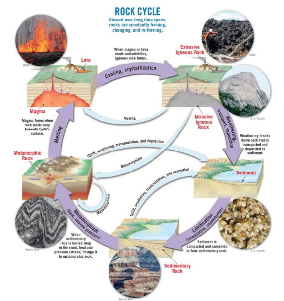 巖石的誕生:巖石是由礦物或礦物質的天然聚合物組成。它們通過一系列地質過程形成,始于巖石循環(huán)。這個循環(huán)包括三種主要類型的巖石:火成巖、沉積巖和變質巖。火成巖源自于熔融巖漿,可以是在地表以下冷卻而成的(侵入巖)或在地表上凝固而成的(噴發(fā)巖)。沉積巖是由沉積物積累和壓實而形成的。而變質巖是指之前存在的巖石經歷了高溫高壓作用,發(fā)生了變質。