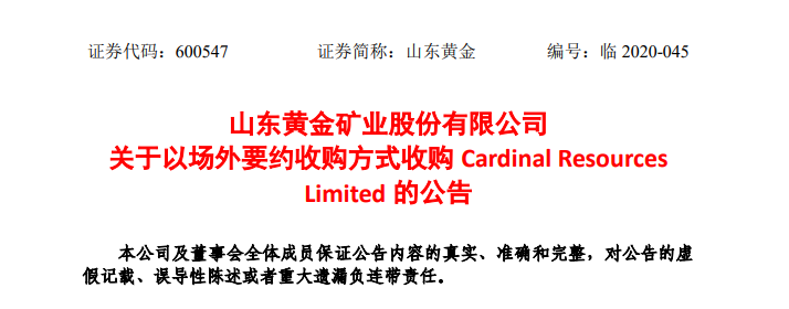 值得關注的是,2020年,山東黃金公司的境外全資子公司山東黃金礦業(香港)有限公司(簡稱“山東黃金香港”)經過和包括俄羅斯黃金巨頭諾德黃金(Nordgold)在內的多家公司競爭,最終和卡帝諾資源有限公司簽署《要約實施協議》,以場外要約收購方式向持有卡帝諾全部已發行股份的股東發出場外附條件要約收購,從而獲得了其位于加納的Namdini金礦項目的開采權。這也是山東黃金在西非加納擁有的首個黃金礦業項目。