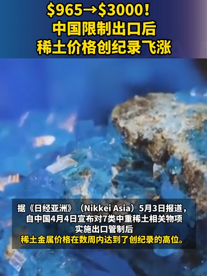 鋱價(jià)從每公斤965美元暴漲至3000美元,漲幅超過(guò)210%。這一價(jià)格水平創(chuàng)下自2015年5月以來(lái)的最高紀(jì)錄。