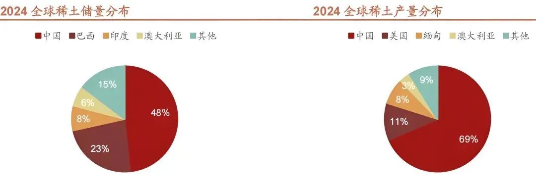 一是儲(chǔ)量豐富。美國(guó)地質(zhì)調(diào)查局?jǐn)?shù)據(jù)顯示,2024年中國(guó)稀土儲(chǔ)量達(dá)4400萬(wàn)噸,占全球近49%的儲(chǔ)量。當(dāng)年產(chǎn)量27萬(wàn)噸,占全球的69.2%。